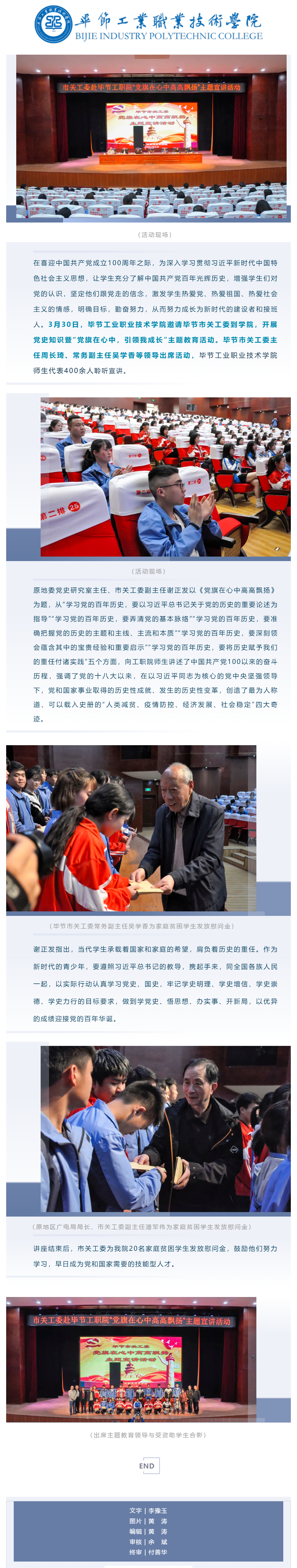 畢節(jié)工業(yè)職業(yè)技術學院邀請畢節(jié)市關工委到學校開展黨史知識暨“黨旗在心中,引領我成長”主題教育活動
