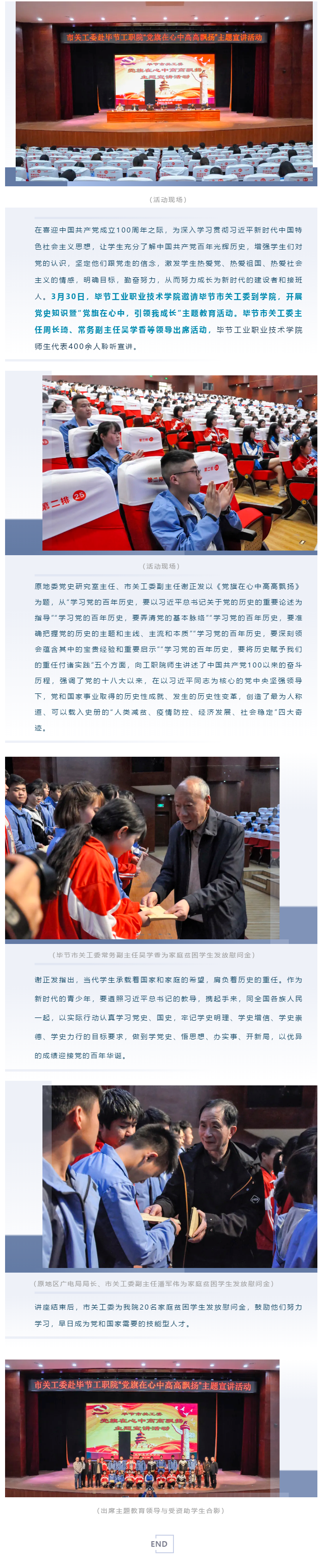 畢節(jié)工業(yè)職業(yè)技術(shù)學(xué)院邀請畢節(jié)市關(guān)工委到學(xué)校開展黨史知識暨“黨旗在心中,引領(lǐng)我成長”主題教育活動