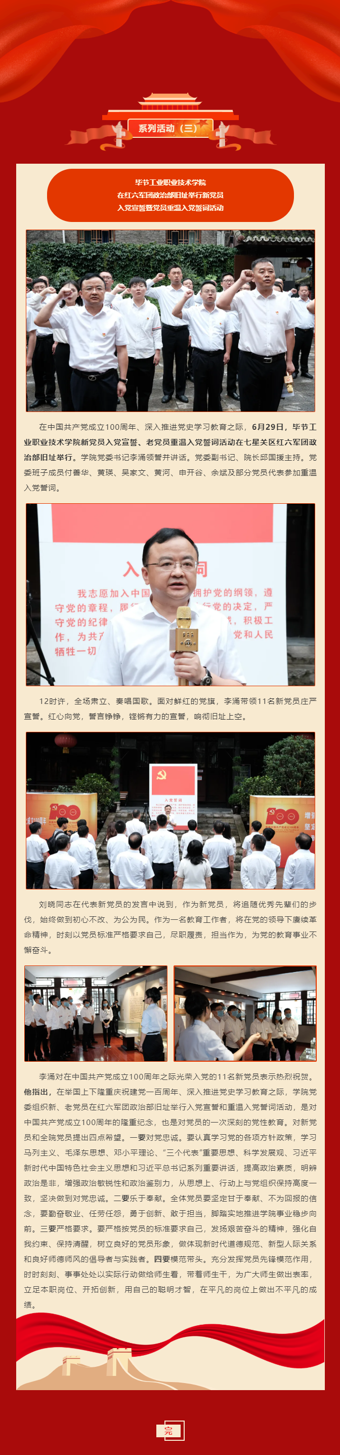 慶祝建黨100周年系列活動(三) | 畢節(jié)工業(yè)職業(yè)技術(shù)學院在紅六軍團政治部舊址舉行新黨員入黨宣誓暨黨員重溫入黨誓詞活動
