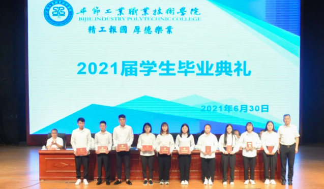 6月30日晚,畢節(jié)工業(yè)職業(yè)技術(shù)學院2021屆畢業(yè)典禮暨第一屆學生技能大賽頒獎儀式在會議中心舉行。現(xiàn)場800余名師生共同慶祝畢業(yè)季,一起告別令人難忘的青春歲月。學院黨委書記李涌出席典禮并真情寄語畢業(yè)生。黨委副書記、院長邱國援主持典禮。黨委副書記付善華及黨委班子成員黃瑛、吳家文、黃河、申開谷、余斌出席典禮。