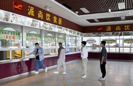 在班上,班主任每日登記到班人數(shù),執(zhí)行晨午晚“三檢”制度;在食堂,學(xué)生采取輪流錯(cuò)峰方式,分段、錯(cuò)時(shí)就餐。