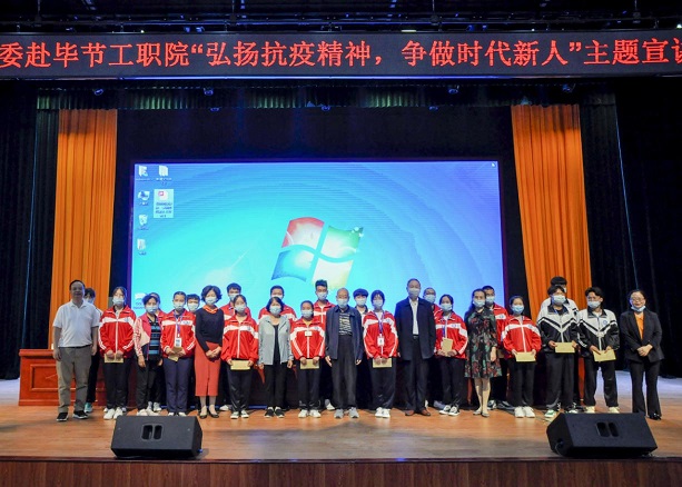 6月20日下午,在充分做好疫情防控工作的前提下,市關(guān)工委主任周長(zhǎng)琦,副主任吳學(xué)香、杜娟、唐華清、曾玉琴、鐘華等一行到我院進(jìn)行“弘揚(yáng)抗疫精神,爭(zhēng)做時(shí)代新人”宣講。我院黨委副書記付善華、副院長(zhǎng)黃文碧,學(xué)生代表430人參加了此次宣講活動(dòng)。