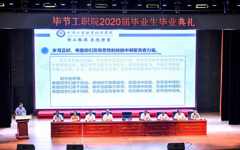 烏蒙大地,惠風(fēng)和暢,碧草如茵。光陰荏苒,歲月如梭。今天,我們?cè)诖巳缂s相聚,舉行畢節(jié)工業(yè)職業(yè)技術(shù)學(xué)院首屆畢業(yè)生畢業(yè)典禮,共同參與417名畢業(yè)生生命歷程中神圣而莊嚴(yán)的時(shí)刻,共同見(jiàn)證417名畢業(yè)生開(kāi)啟未來(lái)嶄新的人生。在此,我謹(jǐn)代表學(xué)院全體師生向所有畢業(yè)生表示熱烈的祝賀和衷心的祝福,衷心祝愿你們從此鵬程萬(wàn)里、不負(fù)所期!