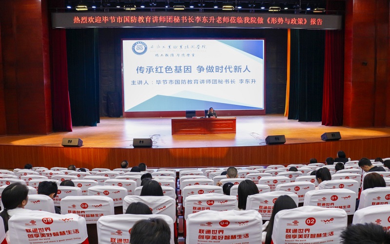 本次專題講座以“傳承紅色基因,爭做時代新人”為主題,李東升老師從“中央紅軍轉(zhuǎn)戰(zhàn)畢節(jié)”、“畢節(jié)根據(jù)地的誕生及畢節(jié)根據(jù)地的輝煌”、“長征的意義”三個方面生動講述了紅軍長征途中發(fā)生在畢節(jié)的事件,以及長征的歷史意義及現(xiàn)實意義。