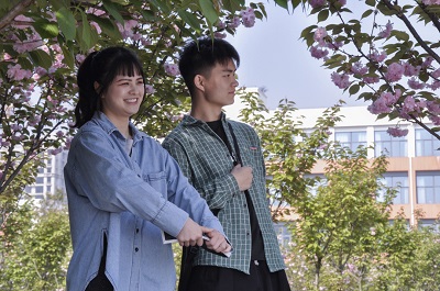 在校園櫻花樹下相遇