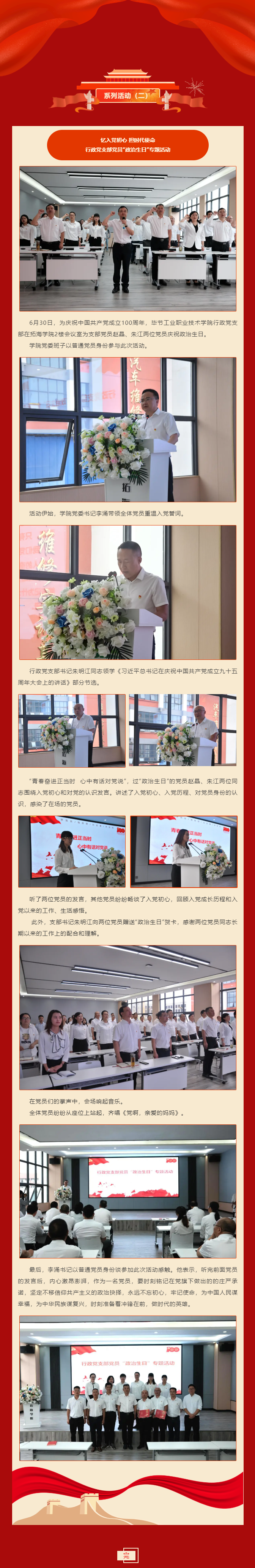 慶祝建黨100周年系列活動(二) | “憶入黨初心 擔時代使命”——行政黨支部黨員“政治生日”專題活動