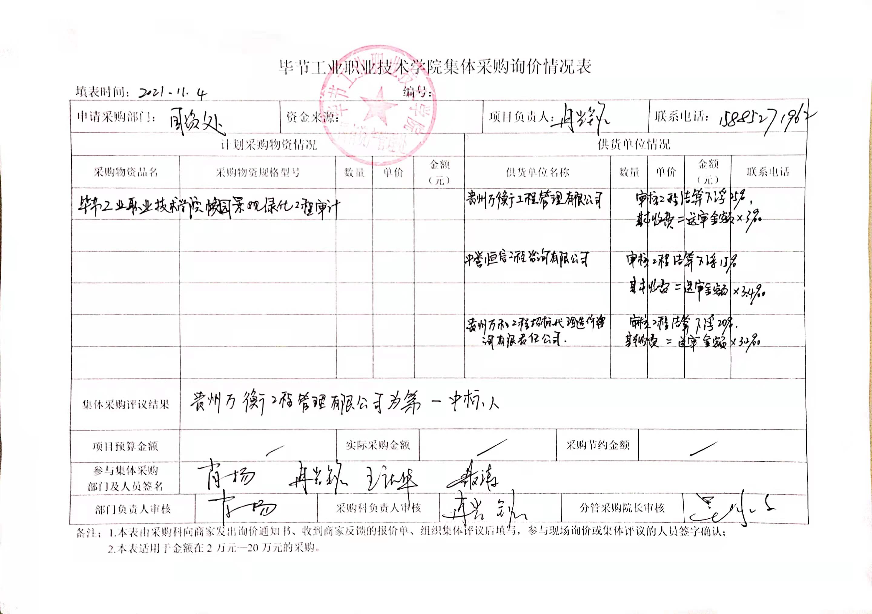 畢節(jié)工業(yè)職業(yè)技術(shù)學(xué)院校園景觀綠化工程審計中標公告