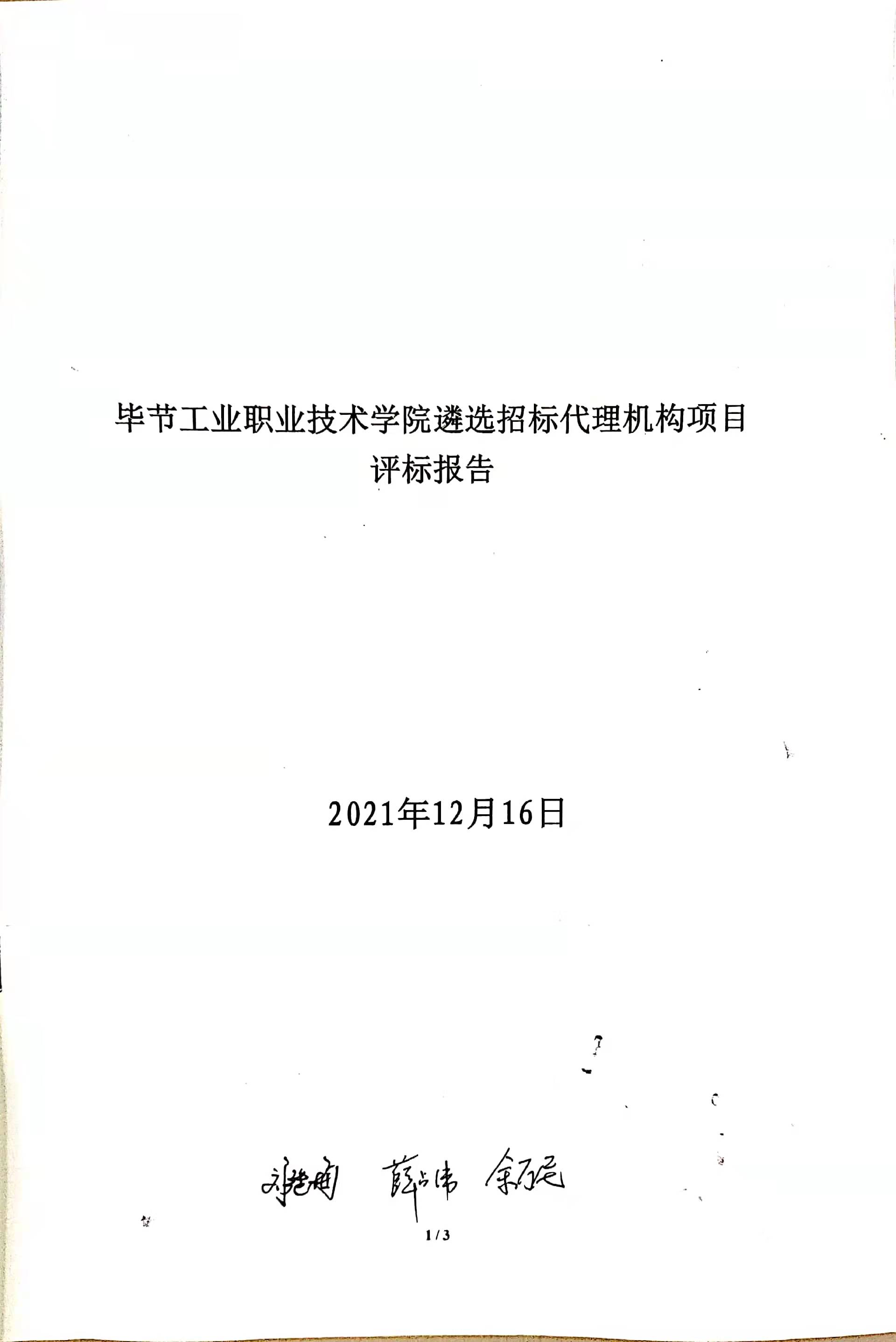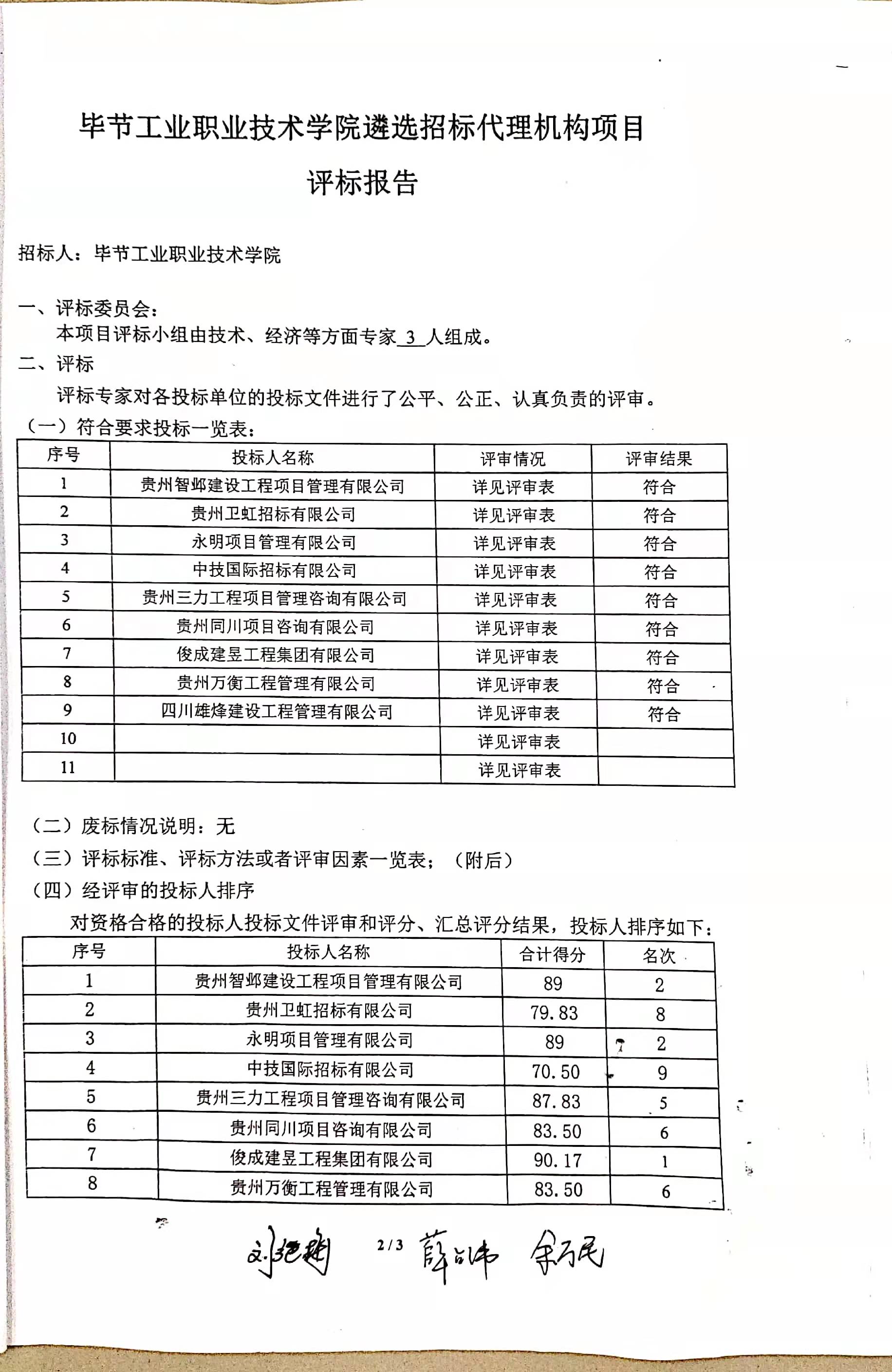畢節(jié)工業(yè)職業(yè)技術(shù)學(xué)院遴選招標(biāo)代理機(jī)構(gòu)項(xiàng)目評標(biāo)報(bào)告