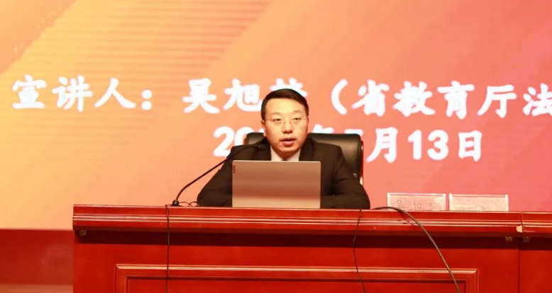 5月13日下午,畢節(jié)工業(yè)職業(yè)技術(shù)學院邀請省教育廳法律顧問吳旭夢博士在學院會議中心開展習近平法治思想專題宣講,黨委委員、宣傳統(tǒng)戰(zhàn)部部長余斌主持宣講,學院300余名師生參加學習。