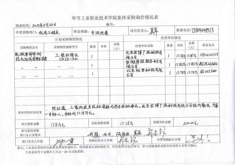 畢節(jié)工業(yè)職業(yè)技術(shù)學(xué)院集體采購詢價(jià)情況表公示