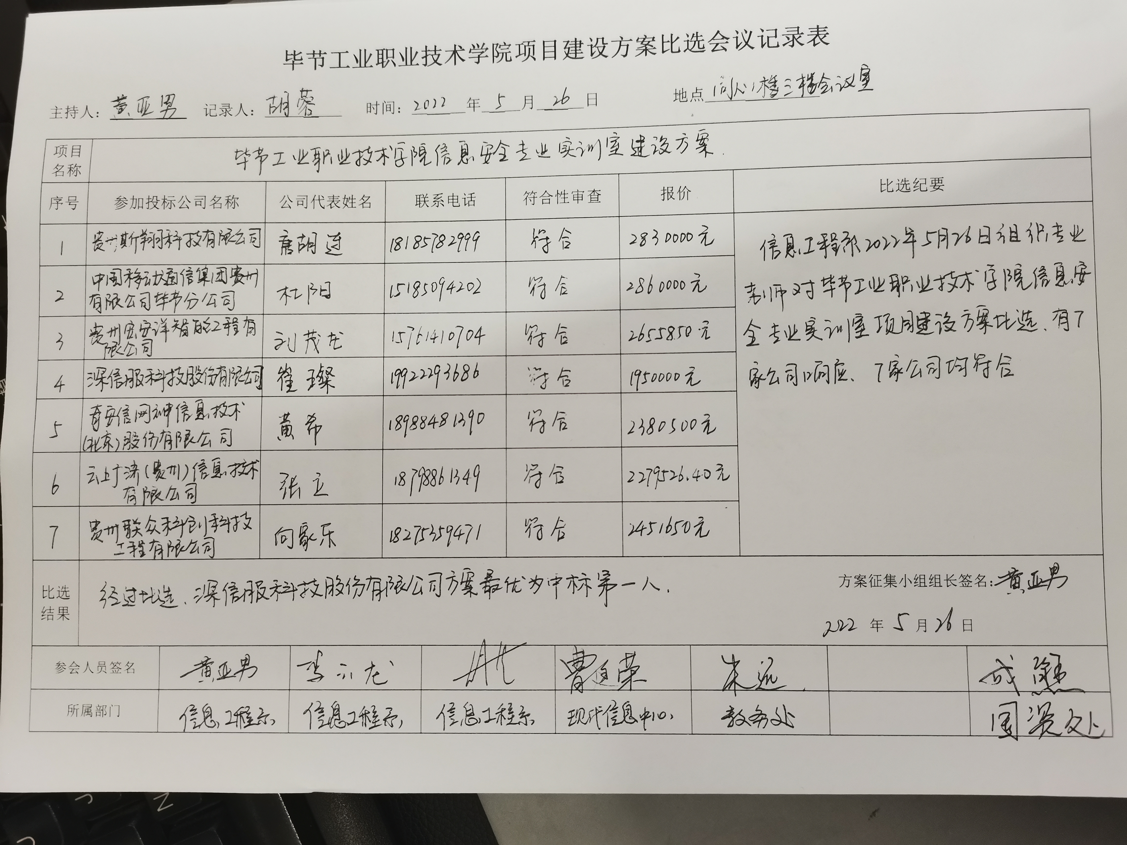 畢節(jié)工業(yè)職業(yè)技術(shù)學院信息安全專業(yè)實訓室建設項目征集方案比選結(jié)果公示