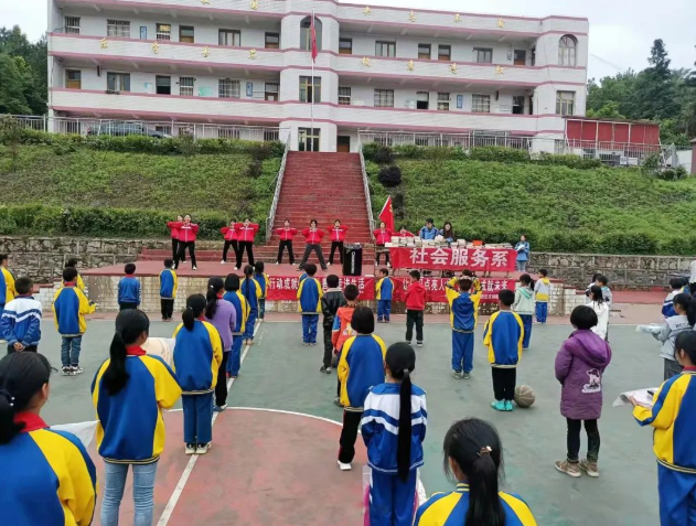 活動中,學(xué)院還為云峰小學(xué)全體師生帶去了文藝表演,活躍的氛圍點燃了他們活潑的心靈,慢慢地融合到中間穿插的各項互動游戲中來,最后連老師也不知不覺加入了活動的行列。師生們的掌聲、笑聲飄蕩在大山中的校園里,久久不息。