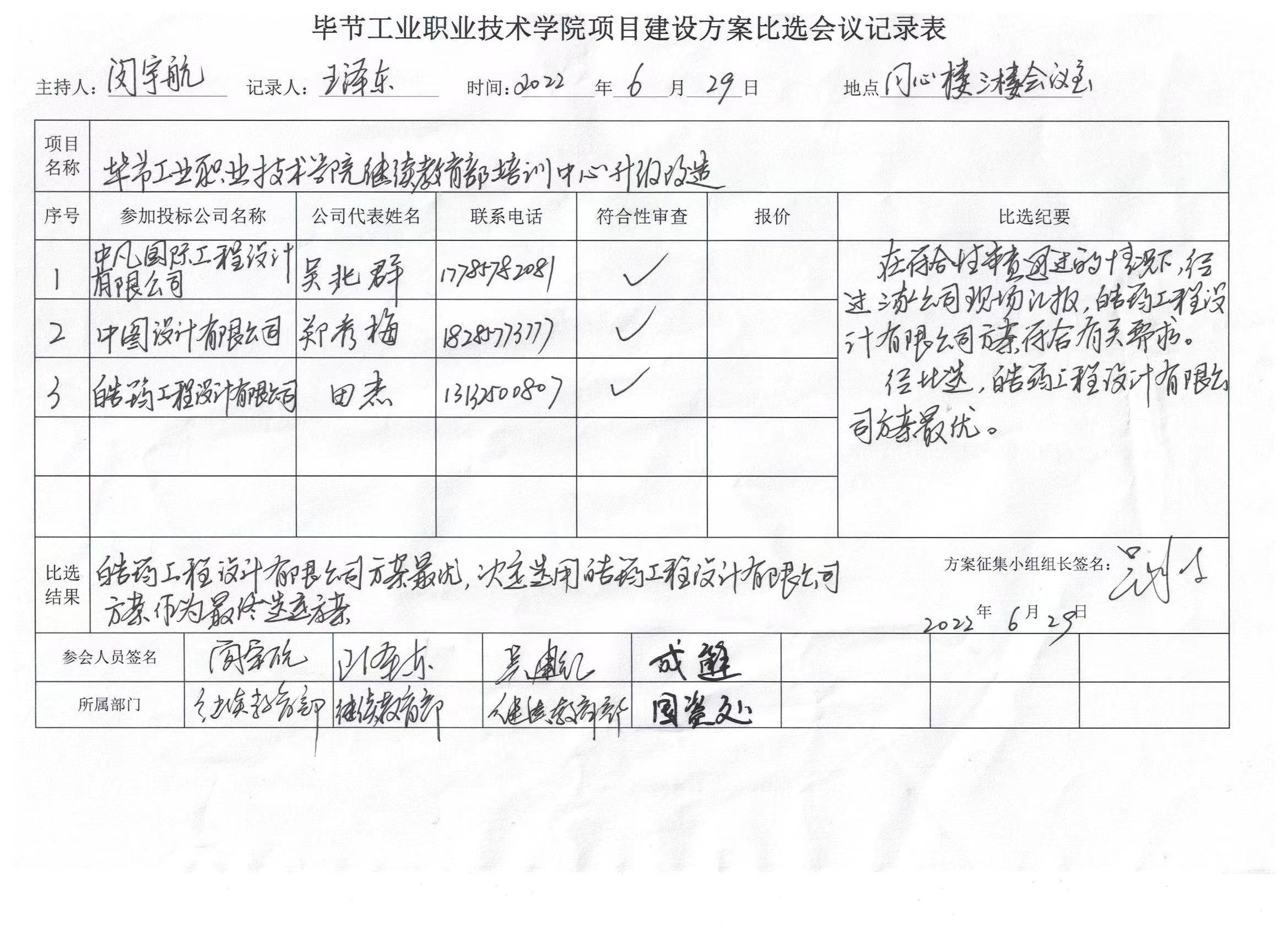 畢節(jié)工業(yè)職業(yè)技術(shù)學(xué)院繼續(xù)教育部培訓(xùn)中心升級改造方案比選結(jié)果公示