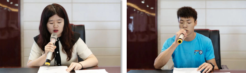 (教師代表閆夢瑩、學(xué)生代表黃杏在儀式上發(fā)言)