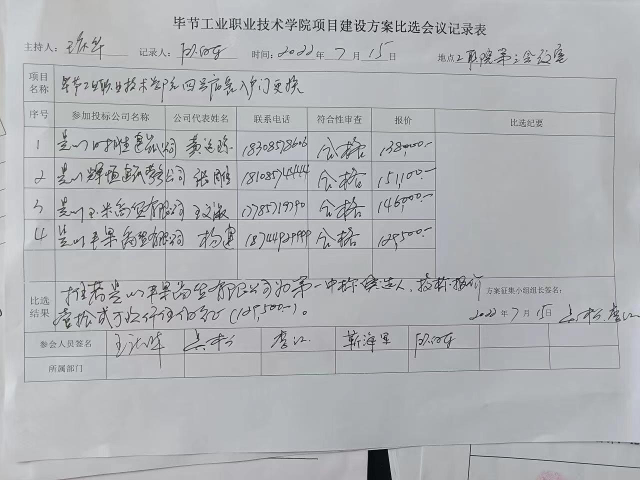 畢節(jié)工業(yè)職業(yè)技術(shù)學(xué)院四號(hào)宿舍入戶門(mén)更換比選結(jié)果公示