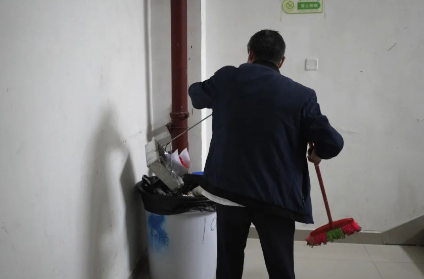 靜默管理這幾天,在畢節(jié)工業(yè)職業(yè)技術(shù)學(xué)院有一個“怪現(xiàn)象”——留在學(xué)校里面的清潔工并不多,但是校園環(huán)境一直保持著很干凈的狀態(tài),尤其是同心樓。這一來是得益于志愿者們積極參與到衛(wèi)生清潔,二來是有這么個“老頭”在默默奉獻著。