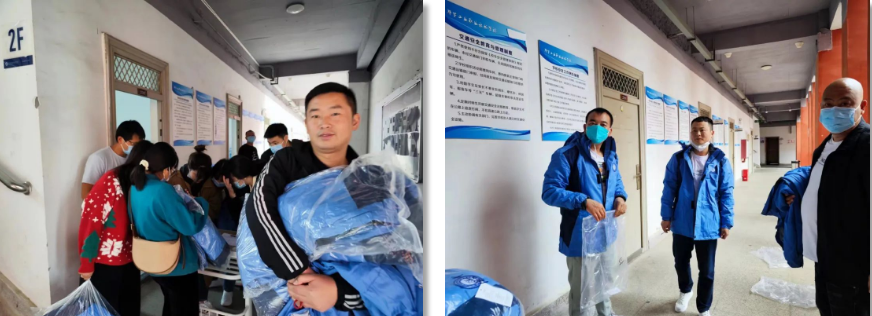 當(dāng)實(shí)施靜默管理后,我院80余名教職工連夜趕回學(xué)校,他們勇毅逆行、不畏風(fēng)險,義無反顧地奮戰(zhàn)在抗擊疫情的一線,他們不僅為全院師生帶來感動,更為疫情防控注入必勝的決心。由于時間緊、任務(wù)重,他們大多數(shù)來得匆忙,恰遇氣溫驟降,教職工們著裝單薄、無換洗衣物便成了大問題。桐城市創(chuàng)意服裝有限公司得知情況后,立即決定將為22級新生準(zhǔn)備的校服中拿出沖鋒衣80余件無償捐獻(xiàn)給學(xué)院抗疫一線教職工保暖所用。