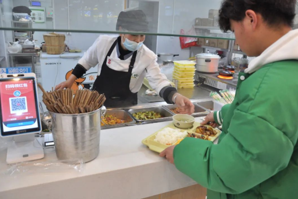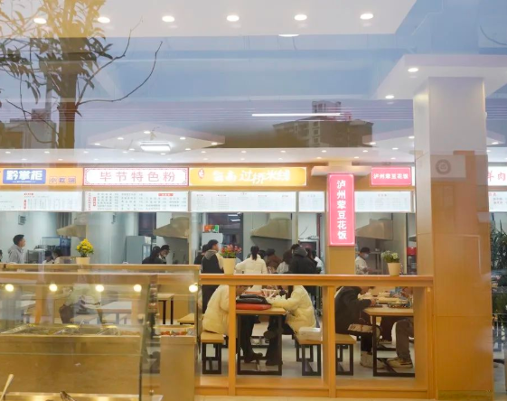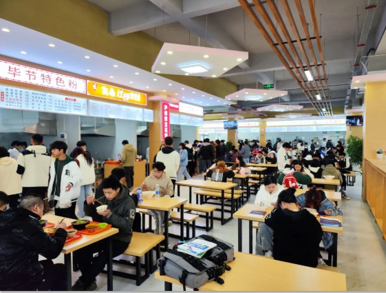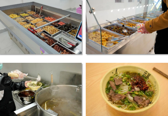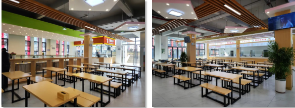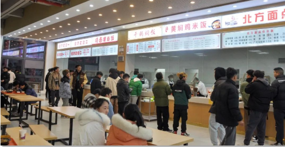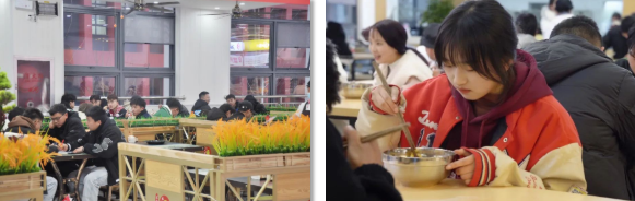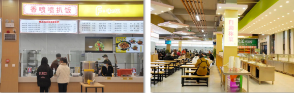 這里有 寬敞的空間 典雅的桌椅 潔凈的地面 可口的飯菜 羊肉粉 炒飯 自助餐 奶茶 水果 甜點 在這里 你總能找到 讓你充滿食欲的那份美味 走進新食堂 小編隨機采訪了幾位就餐的同學 大家都對新食堂表示滿意 “我們的新食堂 顏值高 味道好 從今天起 我再也不羨慕別人家的食堂了” “學校為我們提供了新的就餐選擇 讓我和同學又有了約飯新去處” “簡直就是我們這種‘干飯人’的福音” 新食堂帶給了學院新的活力 帶給了同學們更好的就餐條件 同學們 在等什么 還不快來體驗一下!