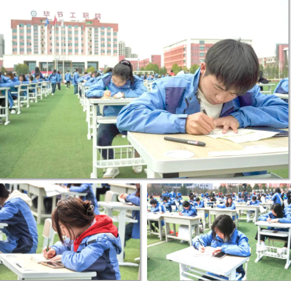 靜心提筆于身前 書香墨香飄校園 行云落筆如云煙 青春頌黨定筆尖