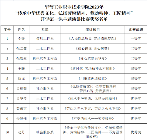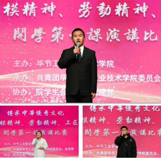 3月28日,畢節(jié)工業(yè)職業(yè)技術(shù)學(xué)院在會(huì)議中心舉辦“傳承中華優(yōu)秀傳統(tǒng)文化,弘揚(yáng)勞模精神、勞動(dòng)精神、工匠精神開學(xué)第一課”主題演講比賽。活動(dòng)旨在學(xué)習(xí)貫徹黨的二十大精神、習(xí)近平總書記在全國(guó)高校思想政治工作會(huì)議上的講話精神,傳承中華優(yōu)秀傳統(tǒng)文化,弘揚(yáng)勞模精神、勞動(dòng)精神、工匠精神,踐行社會(huì)主義核心價(jià)值觀。