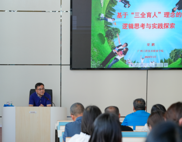 梁鵬在崇德樓階梯教室開展了 “基于‘三全育人’理念的邏輯與思考”的專題講座,分享了廣州工程技術(shù)職業(yè)學院的辦學理念、教學模式、課程設(shè)置以及學生素質(zhì)培養(yǎng)等方面的經(jīng)驗和成果,為我院教師創(chuàng)新育人理念,探索教育方式提供了新思路。