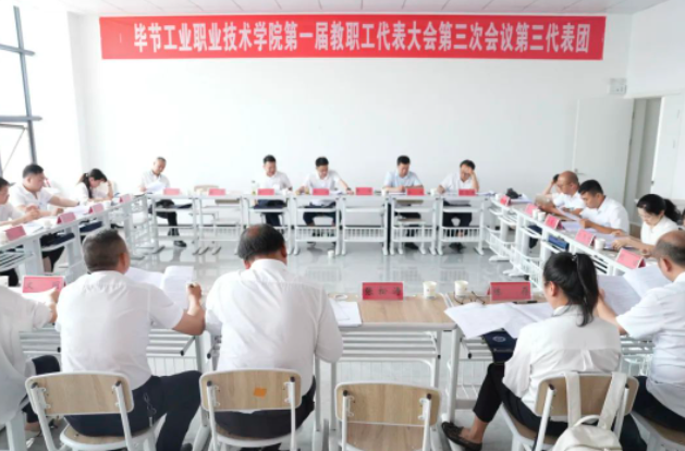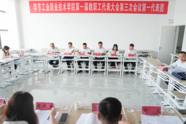 大會(huì)還聽(tīng)取了《畢節(jié)工業(yè)職業(yè)技術(shù)學(xué)院2022年財(cái)務(wù)預(yù)算執(zhí)行情況和2023年財(cái)務(wù)預(yù)算情況報(bào)告》《畢節(jié)工業(yè)職業(yè)技術(shù)學(xué)院工會(huì)工作報(bào)告》《畢節(jié)工業(yè)職業(yè)技術(shù)學(xué)院第一屆第二次教職工代表大會(huì)提案落實(shí)情況及第一屆第三次教職工代表大會(huì)提案征情況報(bào)告》,審議了《畢節(jié)工業(yè)職業(yè)技術(shù)學(xué)院專業(yè)技術(shù)職務(wù)評(píng)聘管理暫行辦法》《畢節(jié)工業(yè)職業(yè)技術(shù)學(xué)院年度部門綜合考核實(shí)施方案》。期間,三個(gè)代表團(tuán)與會(huì)代表紛紛以高度的責(zé)任感和飽滿的主人翁精神,緊緊圍繞中心工作,對(duì)大會(huì)相關(guān)《報(bào)告》《辦法》《方案》及相關(guān)《決議(草案)》進(jìn)行認(rèn)真討論和審議,提出修改意見(jiàn)和建議,積極為學(xué)院發(fā)展建言獻(xiàn)策。