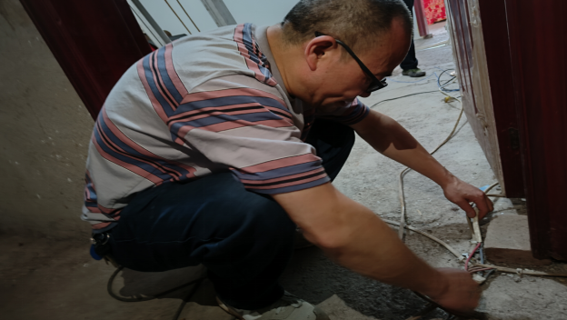 (圖為老師檢查村民家中存在安全隱患的電路畫面)