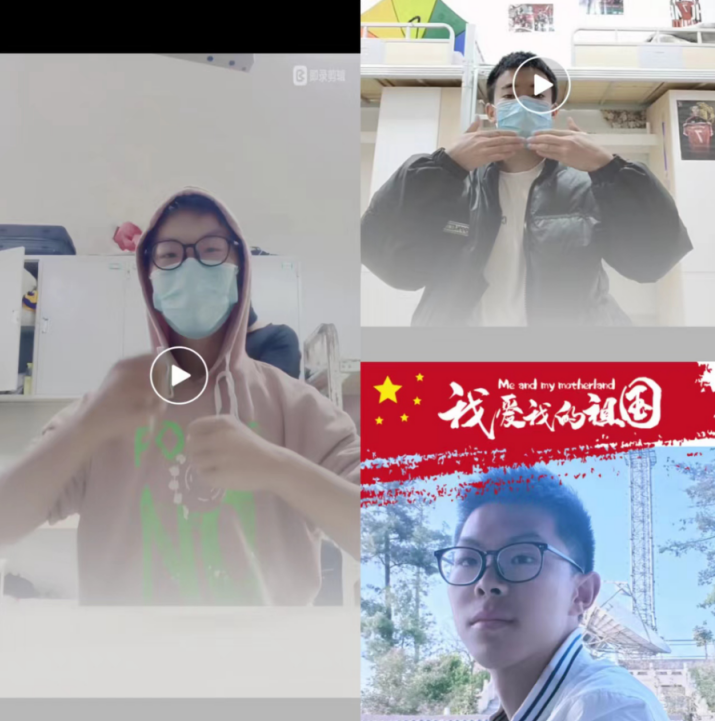 最后,注重培養(yǎng)學(xué)生愛(ài)國(guó)情懷,樹立正確的價(jià)值觀。鼓勵(lì)學(xué)生結(jié)合近期疫情防控工作,以及臨近的建國(guó)73周年紀(jì)念活動(dòng),用自己所看、所思、所想、所悟,采用作畫、手勢(shì)舞、與國(guó)旗合影的方式表達(dá)自己對(duì)抗議一線工作人員的感謝感恩之情,向祖國(guó)表白,培養(yǎng)學(xué)生積極向上的精神。