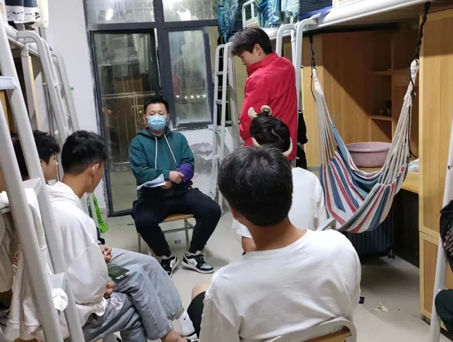 我系聶濤、史曉嵐、何應(yīng)垚、蒙光國(guó)等多名老師第一時(shí)間趕赴學(xué)院防控一線,組織開展疫情靜默期間各項(xiàng)工作,并帶領(lǐng)我系志愿者同學(xué)用心用情服務(wù)學(xué)生、關(guān)愛(ài)學(xué)生。在靜默期間走訪學(xué)生寢室,關(guān)注重點(diǎn)特殊人群、排查心理健康異常情況等,并做好相應(yīng)記錄。