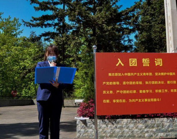 隨后,同學(xué)們面向團旗,高舉右拳,再次重溫入團誓詞,鏗鏘的誓言提醒著每一位團員要牢記自己的身份與職責,堅定“不忘初心,牢記使命”的理想信念,將英雄事跡銘記于心,將艱苦奮斗的精神踐行到日常學(xué)習(xí)、工作中。