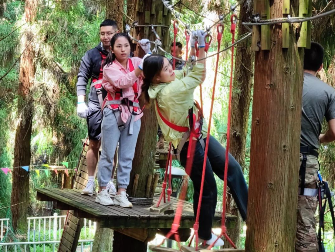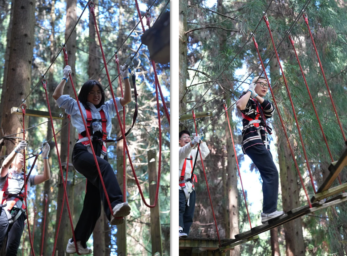 活動項目豐富多樣,現(xiàn)場氣氛歡快,活動前,工作人員向大家詳細介紹了規(guī)則和項目內(nèi)容,老師們共同商討研究,信心滿滿、蓄勢待發(fā)。破冰訓(xùn)練、彩虹滑道、叢林穿越等一系列充滿刺激挑戰(zhàn)的團隊游戲和互動,使得教師們在愉悅的情緒下彼此更加親近。