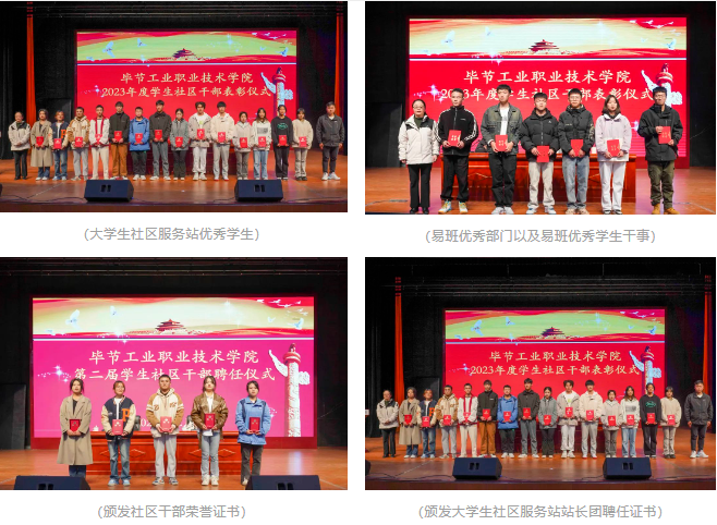 12月6日,畢節(jié)工業(yè)職業(yè)技術(shù)學院“一站式”學生社區(qū)干部表彰及聘任儀式在多功能廳召開。學院黨委委員、副院長黃文碧出席儀式并為受表彰和聘任的同學頒獎,學生工作處負責人胡永祚主持會議并為大學生社區(qū)服務站優(yōu)秀學生頒發(fā)榮譽證書。學院相關(guān)部門主要負責人,社區(qū)管理委員會、易班工作及系部師生代表800余人參加儀式。