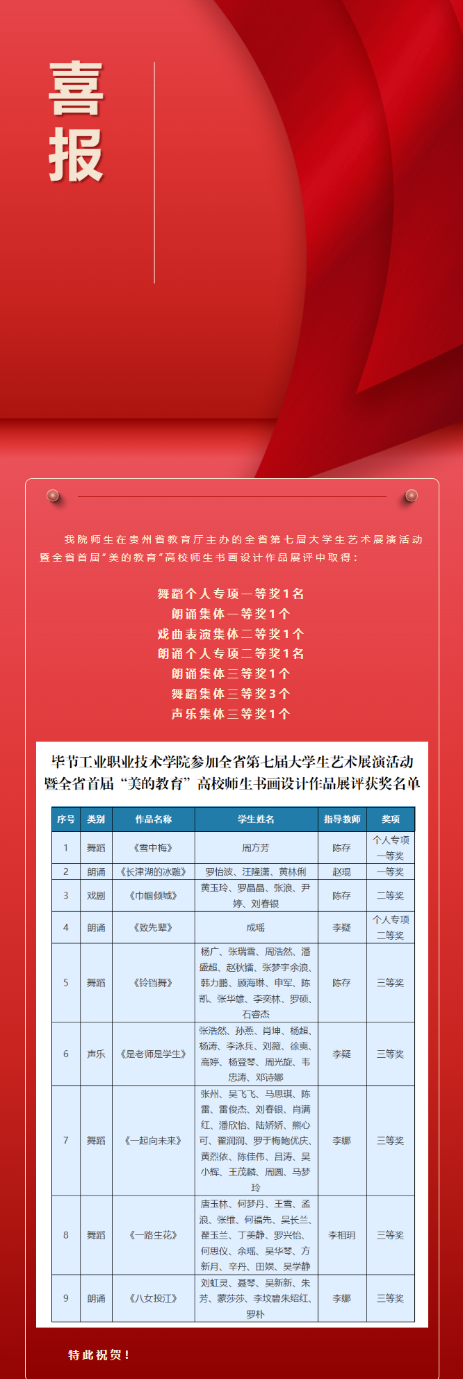 畢節(jié)工業(yè)職業(yè)技術(shù)學(xué)院 喜報