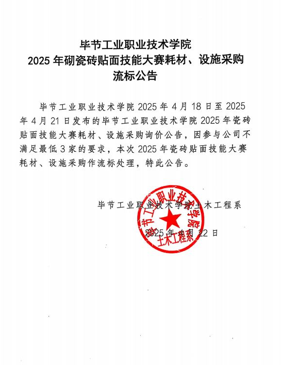 2025年砌筑耗材、設(shè)施流標公告
