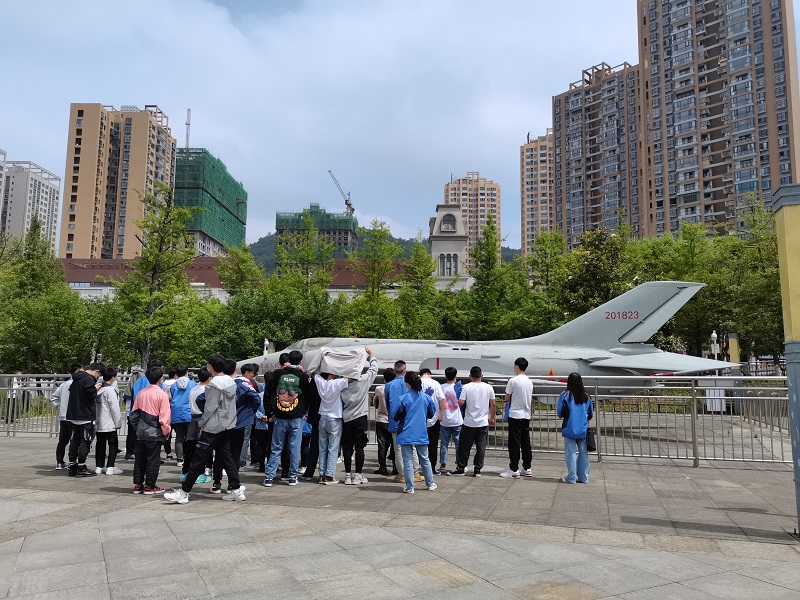 隨后,同學們又參觀了中國研制的單座雙發(fā)動機超音速強5-強擊機,通過聽取解說和近距離接觸,對中國強擊機的發(fā)展史有了一定的了解收獲。