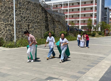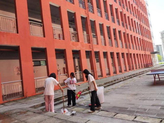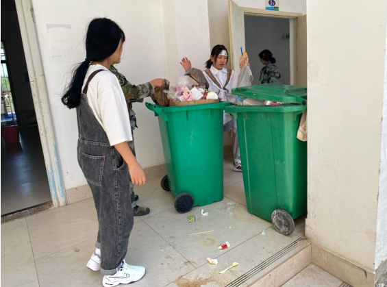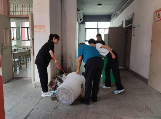 2021年9月2日中午,第三教學(xué)黨支部的黨員教師做好帶頭作用,親自清掃各樓層垃圾滿溢的垃圾桶,和學(xué)生一起到垃圾回收點倒垃圾。