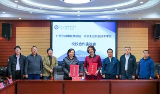 3月30日,廣州市機(jī)電技師學(xué)院與畢節(jié)工業(yè)職業(yè)技術(shù)學(xué)院校校合作座談會(huì)暨框架協(xié)議簽訂儀式在學(xué)院同心樓七樓會(huì)議室舉行。廣州機(jī)電技師學(xué)院副院長(zhǎng)謝黧、校企辦主任陳移新、實(shí)訓(xùn)中心主任王治平、培訓(xùn)鑒定處主任盤(pán)亮星、 培訓(xùn)鑒定處部長(zhǎng)曹乃龍,學(xué)院黨委委員、副院長(zhǎng)黃瑛、汽車(chē)工程系黨總支書(shū)記張禾、機(jī)電工程系負(fù)責(zé)人張建及相關(guān)專(zhuān)業(yè)教師代表參加座談,會(huì)議由張禾主持。