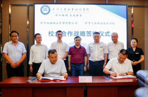 為深入貫徹落實(shí)習(xí)近平總書(shū)記對(duì)技能人才工作重要指示精神,切實(shí)做好新時(shí)代技能人才工作,9月3日,畢節(jié)拓海物業(yè)管理有限公司與畢節(jié)工業(yè)職業(yè)技術(shù)學(xué)院校企合作戰(zhàn)略協(xié)議簽訂儀式在學(xué)院同心樓三樓會(huì)議室舉行。畢節(jié)拓海物業(yè)管理有限公司總經(jīng)理?xiàng)钤聫?qiáng)、常務(wù)副總經(jīng)理邱鋒一行,學(xué)院黨委書(shū)記李涌,黨委副書(shū)記、院長(zhǎng)邱國(guó)援,黨委委員、副院長(zhǎng)吳家文、相關(guān)部門負(fù)責(zé)人及教師代表出席儀式。簽約儀式由邱國(guó)援主持。