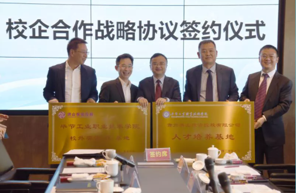 隨后,貴州洪山投資控股有限公司董事長金烈森和學院院長邱國援簽訂了校企合作戰(zhàn)略協(xié)議書,并完成授牌儀式。