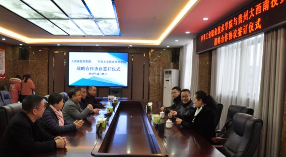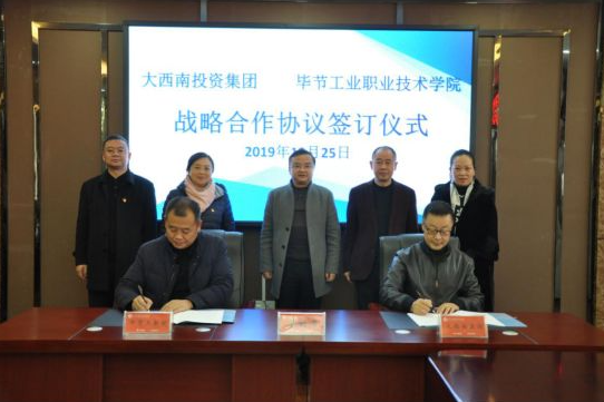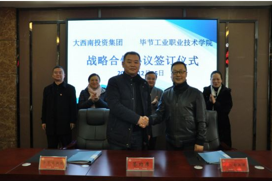 智慧共生,合作共贏。為深入貫徹《國家職業(yè)教育改革實施方案》,加強(qiáng)校企合作、人才培養(yǎng)和培訓(xùn),2019年12月25日,畢節(jié)工業(yè)職業(yè)技術(shù)學(xué)院與大西南投資集團(tuán)有限責(zé)任公司校企合作戰(zhàn)略協(xié)議簽訂儀式在學(xué)院同心樓三樓會議室正式舉行。