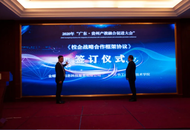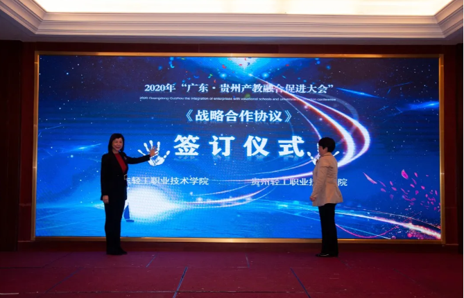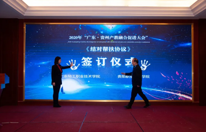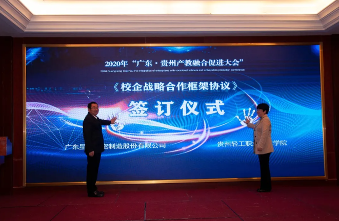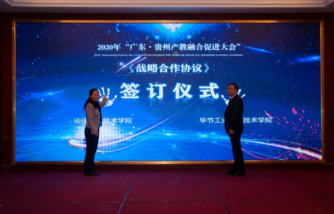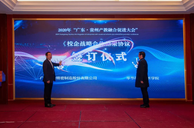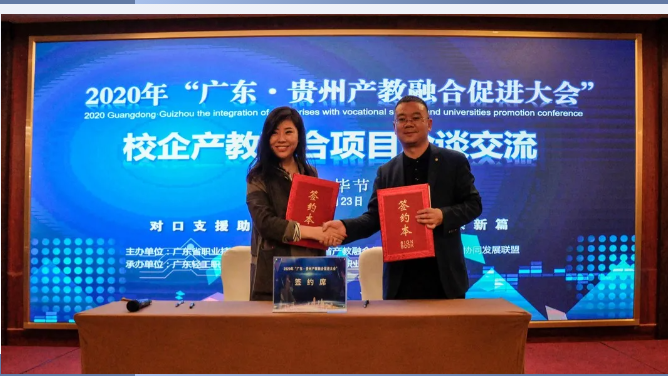 東西部協(xié)作,產(chǎn)教融合助發(fā)展。對深入推動產(chǎn)教融合、校企合作、專業(yè)布局緊扣產(chǎn)業(yè)發(fā)展、教育教學(xué)改革貼近人才培養(yǎng)需求等發(fā)揮了助推作用,將使貴州職業(yè)教育深化產(chǎn)教融合、校企合作打開一個全新的局面。 貴州省教育廳一級巡視員鞠洪在會上表示,隨著中央、省一系列政策、措施的出臺實(shí)施,產(chǎn)教融合發(fā)展將迎來更好的發(fā)展機(jī)遇。廣東·貴州產(chǎn)教融合促進(jìn)大會的召開,為我省各職業(yè)院校與廣東省的各行各業(yè)優(yōu)質(zhì)企業(yè)和職業(yè)院校交流溝通搭建了一個廣闊的平臺。期待通過這個平臺,粵黔兩地能更大范圍、更寬領(lǐng)域、更深層次開展合作,實(shí)現(xiàn)廣東市場+貴州產(chǎn)品,廣東研發(fā)+貴州制造的融合發(fā)展。 廣東輕工職業(yè)技術(shù)學(xué)院黨委書記杜安國表示,落實(shí)廣黔結(jié)對幫扶舉措,發(fā)揮企業(yè)與教育的互促力量,在廣東·貴州產(chǎn)教融合促進(jìn)大會的廣闊平臺上,為校企合作牽線搭橋,共同建立長期緊密的合作關(guān)系,促進(jìn)職業(yè)教育高質(zhì)量發(fā)展,實(shí)現(xiàn)職教幫扶促發(fā)展,產(chǎn)教融合謀新篇。 發(fā)揮自身優(yōu)勢,助力合作共贏。畢節(jié)市人民政府副市長胡愛斌在會中坦言,落實(shí)東西部扶貧協(xié)作,畢節(jié)要盡其資源,提升兩省兩市的產(chǎn)教契合度,圍繞自身的優(yōu)勢,加強(qiáng)廣東企業(yè)和貴州教育的結(jié)合優(yōu)勢,為畢節(jié)打造更多的“畢工強(qiáng)將”、奮力人才! 會上,廣東省向貴州職業(yè)院校捐贈阿里云智慧校園3.0系統(tǒng),廣州市億科計算機(jī)公司向畢節(jié)工業(yè)職業(yè)技術(shù)學(xué)院捐贈智慧黨建系統(tǒng);相關(guān)企業(yè)與院校簽訂人才專業(yè)培養(yǎng)、訂單班、校企戰(zhàn)略合作、產(chǎn)教融合項(xiàng)目20余項(xiàng)。廣東星徽精密制造股份有限公司代表參會企業(yè)進(jìn)行發(fā)言,10余家企業(yè)進(jìn)行了產(chǎn)教融合案例分享。 會中,許多學(xué)校和企業(yè)單位都精彩紛呈的展示了“自家”的優(yōu)勢及未來發(fā)展。很多校企單位在行程中便互相洽談、簽約,這些成功的簽約對產(chǎn)教融合,校企合作有了更深的意義,推進(jìn)了產(chǎn)教融合,校企合作,校校合作的進(jìn)程,引領(lǐng)時代的新篇章。 廣東?貴州產(chǎn)教融合促進(jìn)大會在畢節(jié)召開,既是山與海的對話,更是心與心的交流。職業(yè)教育的目標(biāo)是培養(yǎng)技能型的人才,深化走產(chǎn)教融合,校企合作之路,加強(qiáng)產(chǎn)教融合,校企合作,達(dá)到互惠互利,合作共贏的優(yōu)勢,共同培育新時代高技能人才。